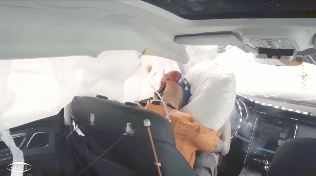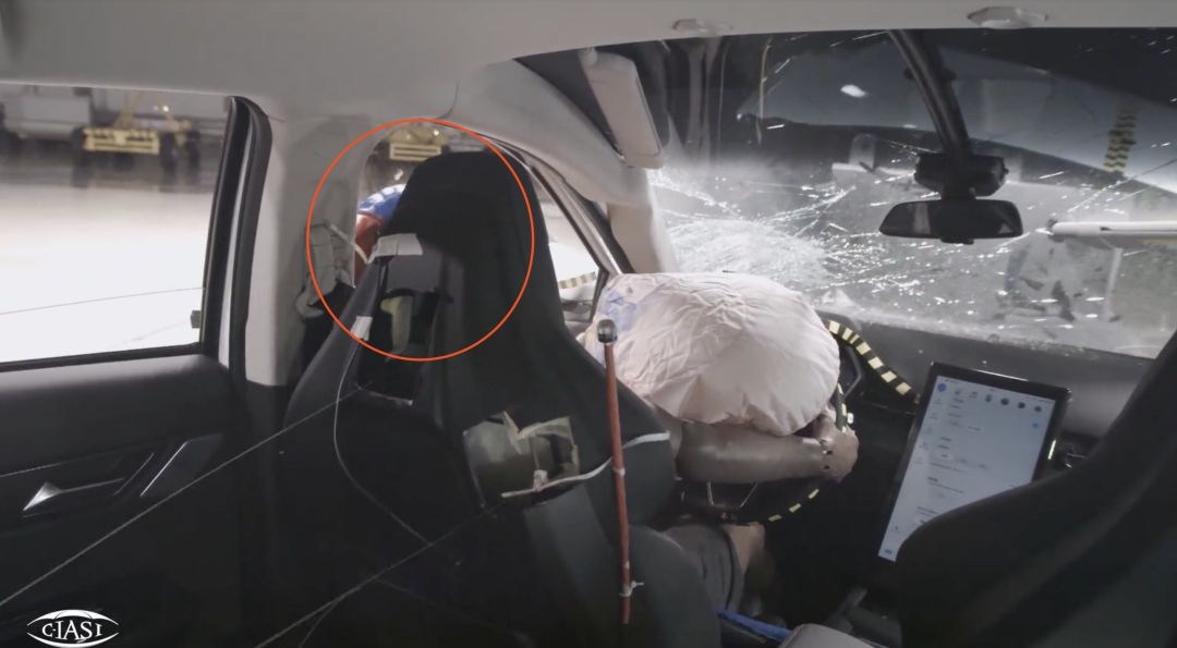 而从测试的画面中也能看出,RX5 MAX的A柱十分坚挺,气囊也没有跑到副驾驶去,与上汽某德系合资品牌的表现形成了鲜明的对比......究竟偷工减料的是中方还是德方呢?留给各位看官自己想吧。