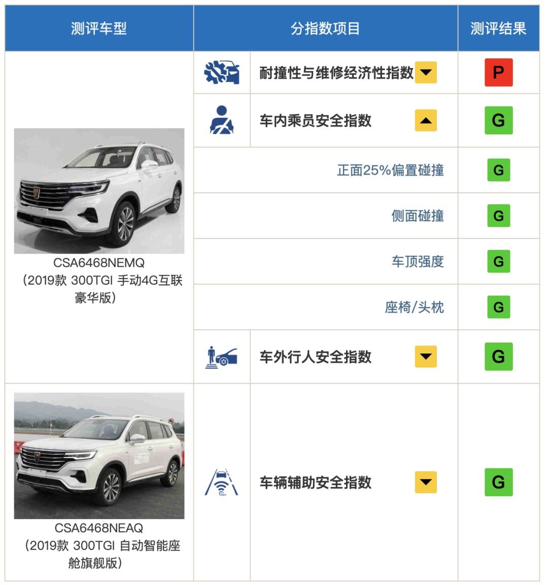而另一边厢,上汽荣威的RX5 MAX的表现用“无懈可击”来形容都不过分了,除去“耐撞维修经济性”这项,RX5 MAX在其他项目均取得了G优秀的评价,在我快速搜索了一下脑海之后,如无意外RX5 MAX与领克01应该是目前最高分的自主品牌车型了。